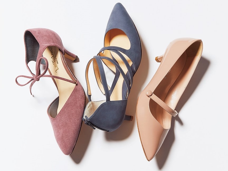 履きやすい安定ヒールを厳選し、幅広足のライター栗田瑞穂さんと、幅狭足のアシスタントY子が試着しました。