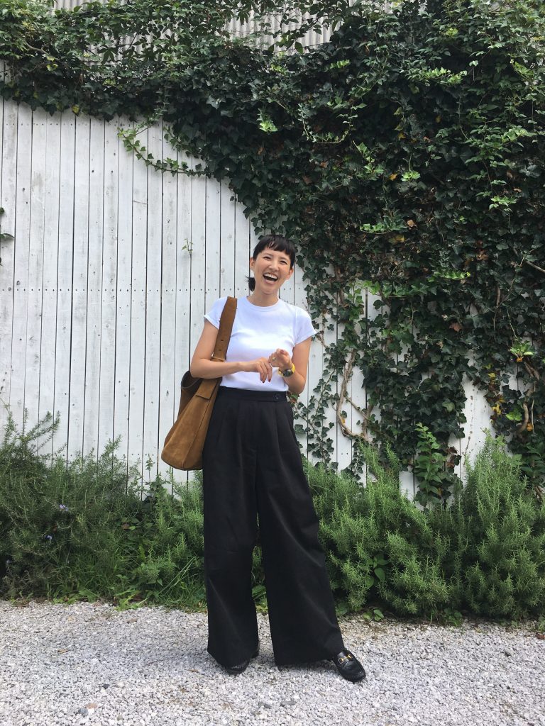 シンプルでコンパクトなTシャツに、市民権を得たと言ってもいい⁉︎腰高でワイドなパンツです。