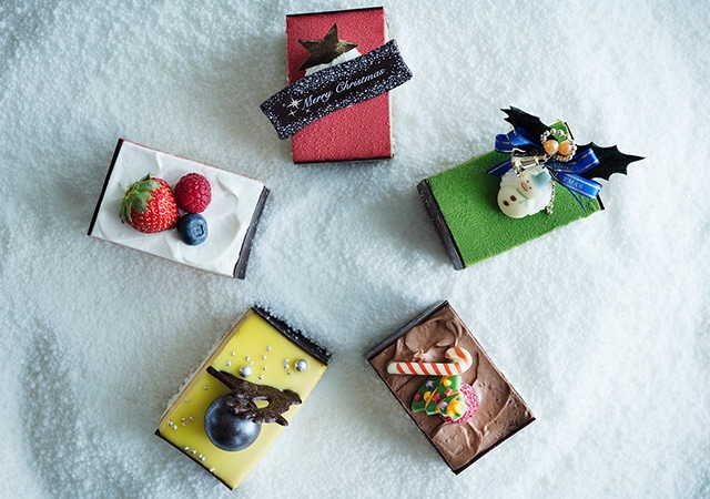 サンタが街にやってきて、街中がウキウキする様子を表しているこちらのケーキは、酸味がさわやかなものや抹茶のほろ苦さを味わえるもの、そして定番のチョコレートや生クリームが存分に味わえるものと色とりどり。家族がそれぞれ好みに合わせて選べる楽しさもありますね。