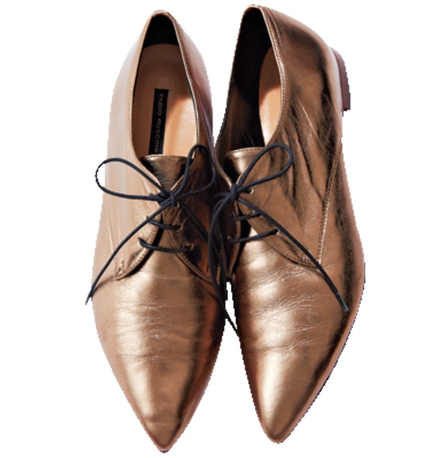 足元をすっきり見せるとんがりトゥと、シャープな印象を演出するメタリックカラーが特徴のレースアップ。柔らか革を使用したスニーカー並みの履き心地。