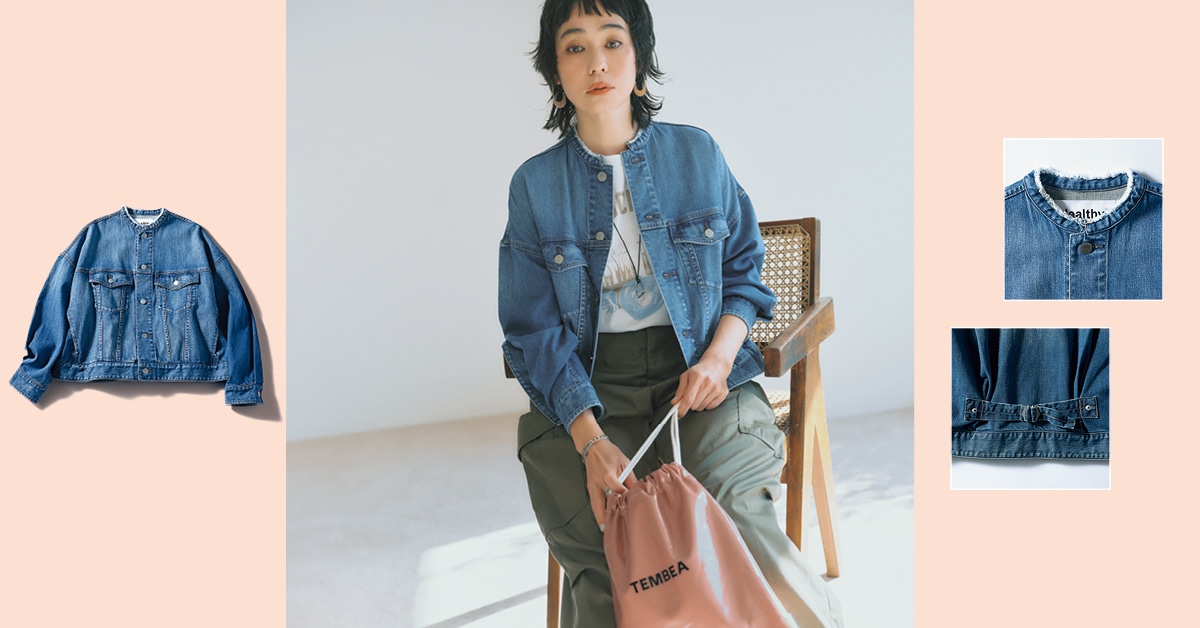 【ヘルシーデニム】【テンベア】この春旬なワンテクGジャンと春らしいスモーキーピンクの撥水巾着