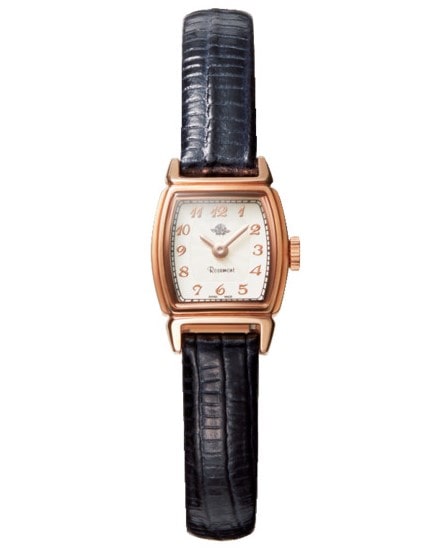 着こなしにひとさじ甘さを加えるローズゴールドや文字盤のバラの刻印など、ロマンティックなムードが漂うアンティーク風デザインが魅力。