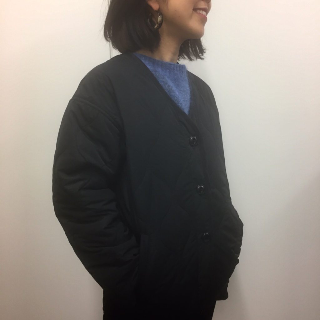 シェアパークでコラボしたキルティングのアウターはVネックでコートを選びません。