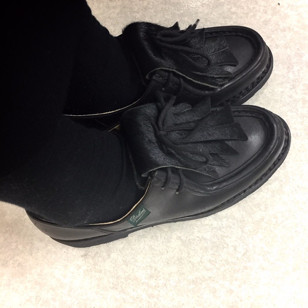 タイツはFALKEのウールだし、パラブーツはさすがのフレンチブランド。ソールが厚くて底冷え知らず。