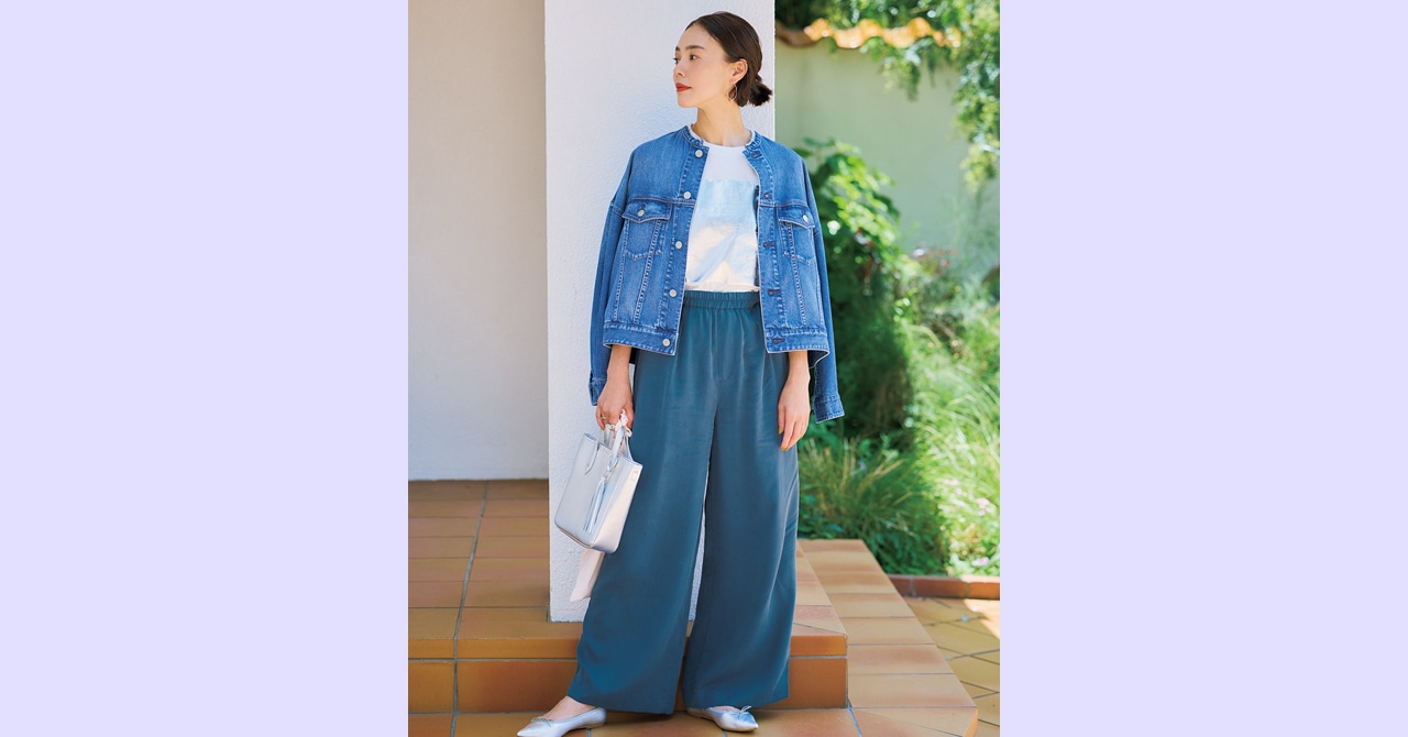 きれいめデニム感覚!涼やか&シックなダスティブルーのパンツで新しい季節をスタート/明日なに着る?