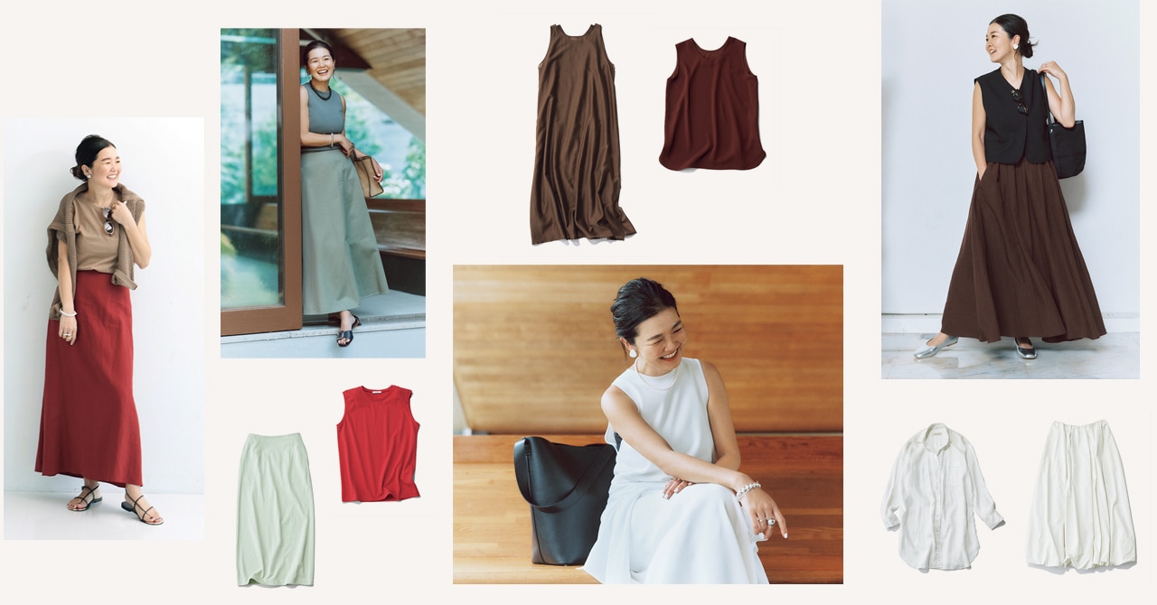 大人気【目黒越子さんの最旬コーデ5選】地味色ベースに”小さな挑戦”で、夏の着こなしをアップデート!