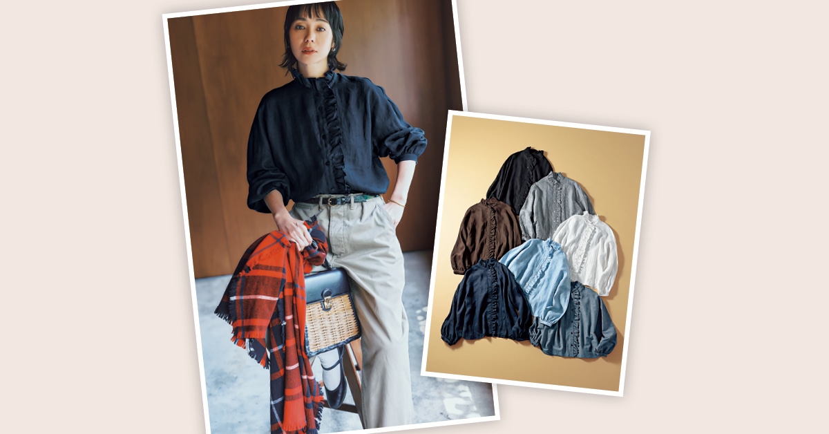 大ヒット更新中!「リネンフリル衿ブラウス」に新色ネイビーとストライプが登場!【12closet】2025秋