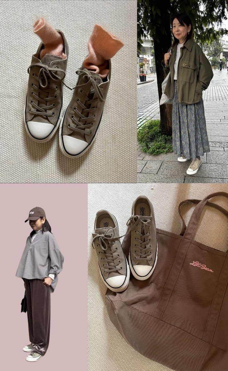 【コンバース】新作グレージュスニーカーが秋のブラウンコーデに大活躍!【雅姫さんコラボ/LEEマルシェ】