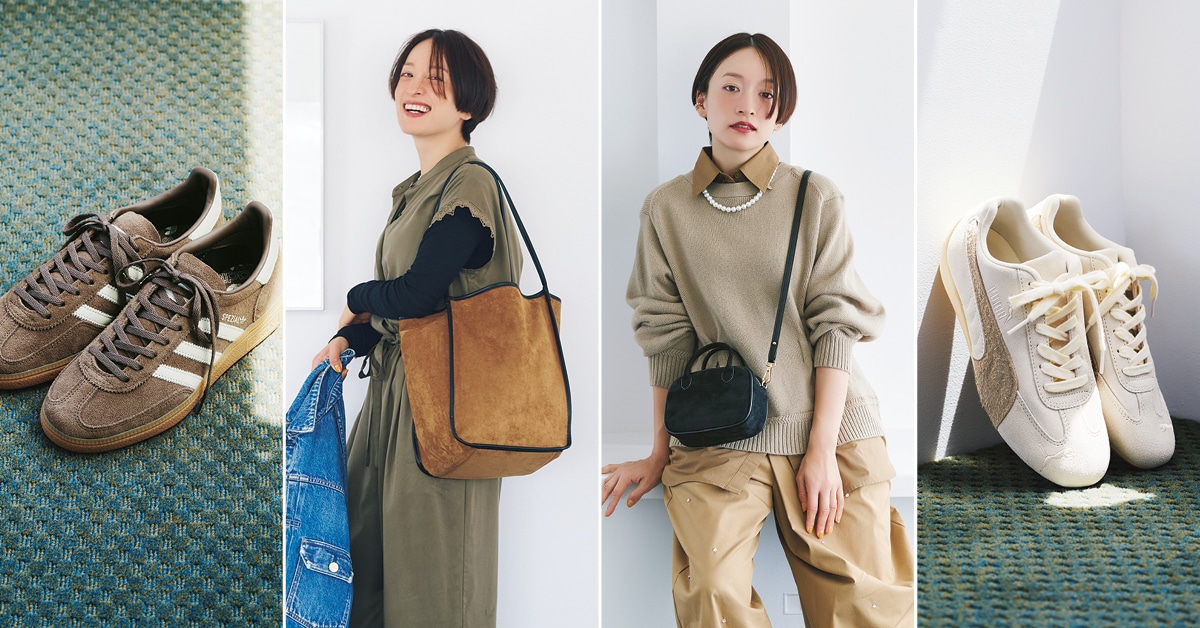 【秋のスエード小物】スニーカー、バッグ…着慣れたカジュアルを格上げしたいときに素敵なアクセントに!