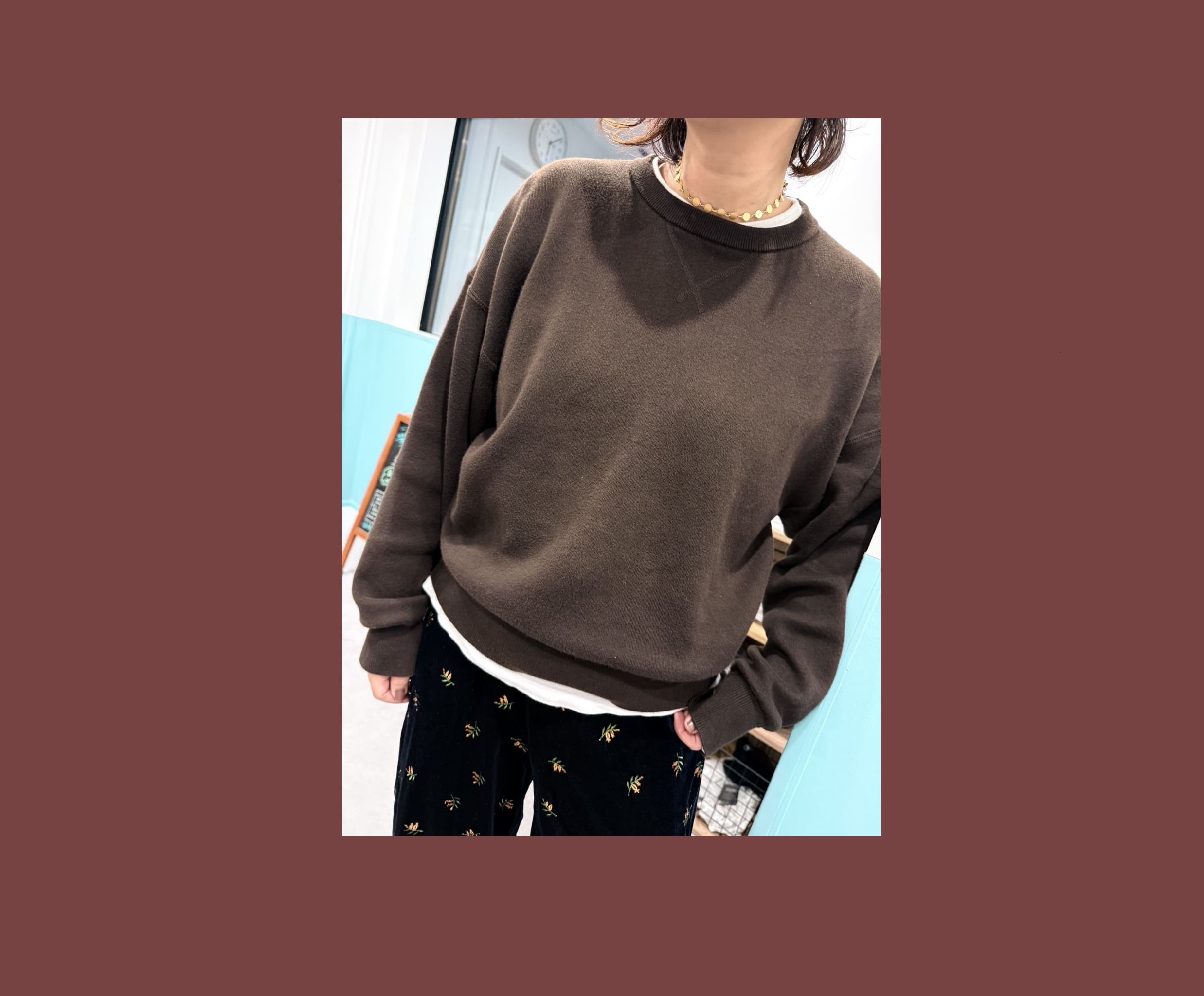 季節の変わり目は「ユニクロ:シー」のスムースコットンクルーネックセーター/スタイリスト徳永千夏さん