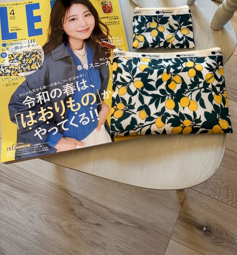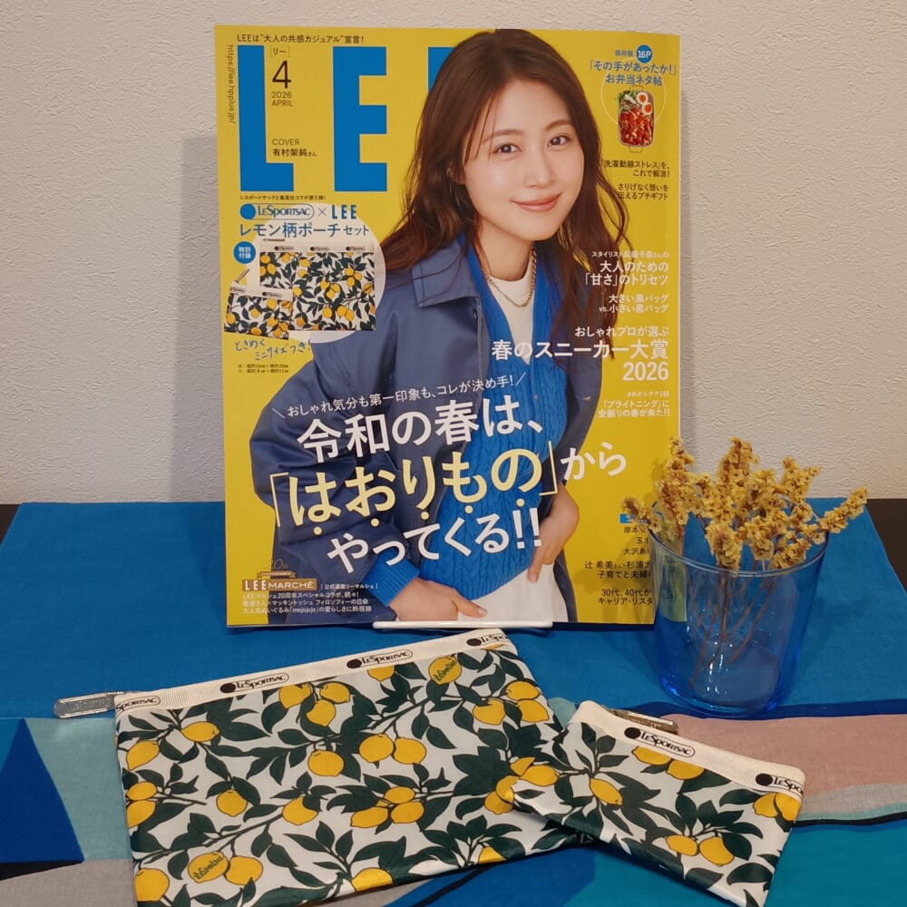 LEE4月号付録・レスポのレモン柄ポーチを早速愛用中!最新号がおしゃれや暮らしの参考になります♪【LEE100人隊のレビューvol.2・2026】