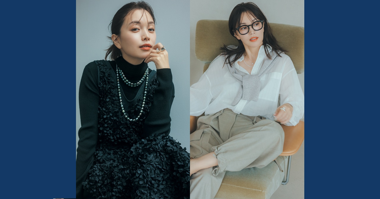 【大人のパールネックレス】重ね使いで楽しむブラックパールと華奢パールの使い方を、スタイリスト古田千晶さんが提案