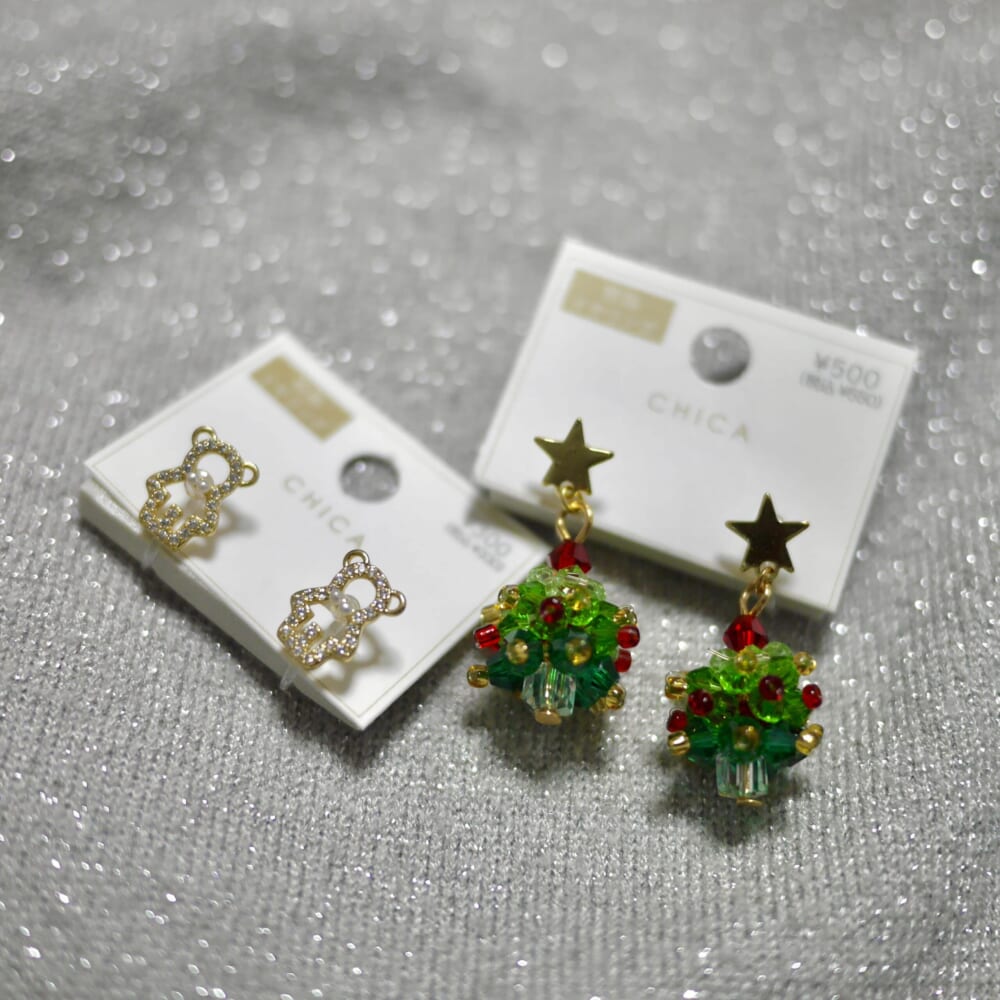 【3coins】500円以下♡ツリー&くまのクリスマスイヤリングが可愛すぎる