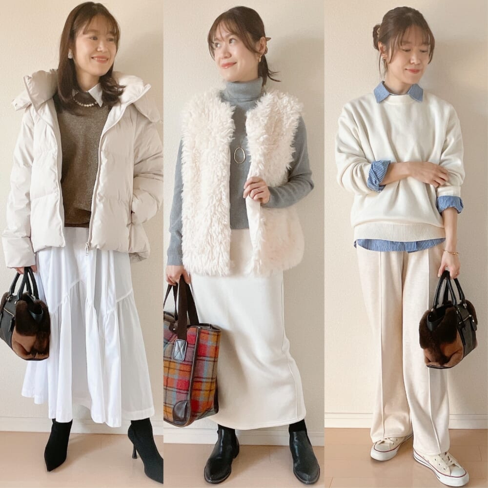 【冬のホワイトコーデ】年末年始のキレイ目カジュアルにGUアイテムが大活躍!
