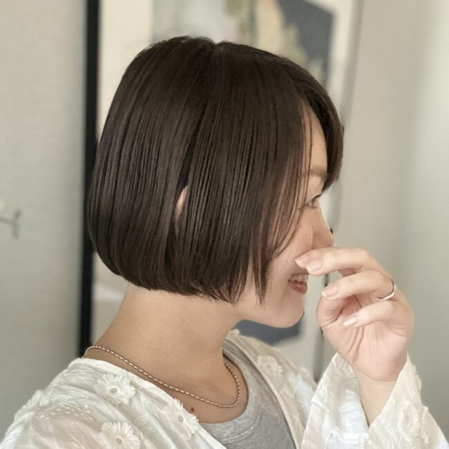 【30代秋ヘア】前下がりのパツッとボブ×オリーブカラーにしました