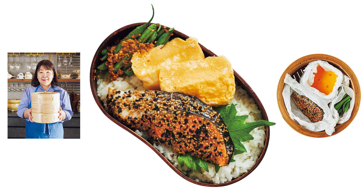 せいろで3品同時に!「塩ザケの白黒ごま蒸し弁当」レシピ/丹羽直美(ikura)さん