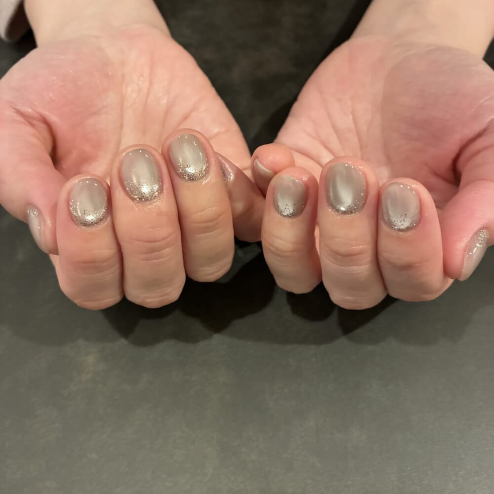 【4月のネイル】グレーのマグネット×グリッターで華やかに♪