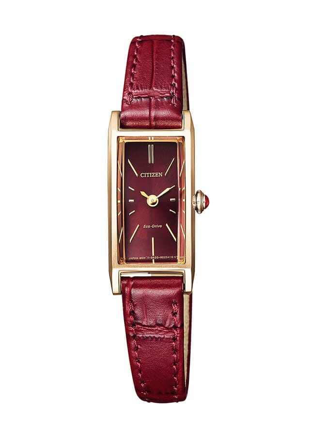 華奢でありながら、凛とした佇まいの上品なデザイン、フェイスもベルトも深紅のEG7043-09Wは女性の手首を華やかに、そして知的に演出。