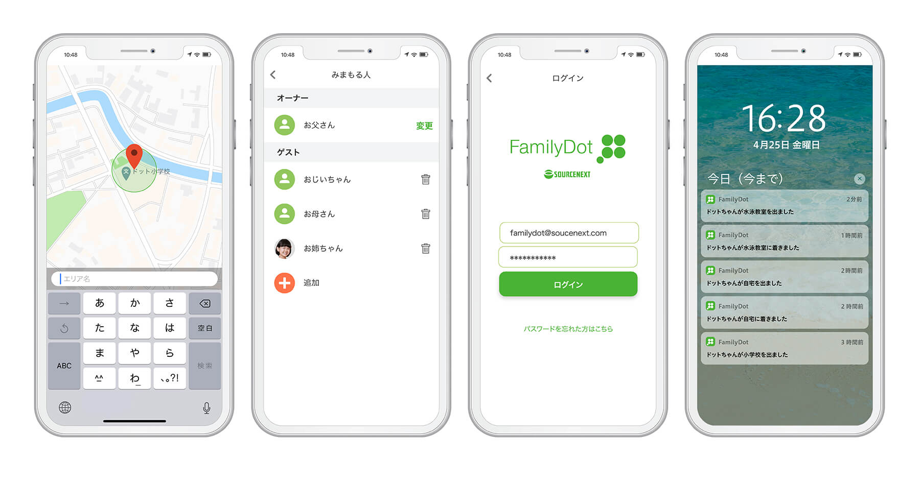 「FamilyDot(ファミリードット)」は、家族に持たせて居場所をいつでもスマ ートフォンで確認できる位置みまもり機です。