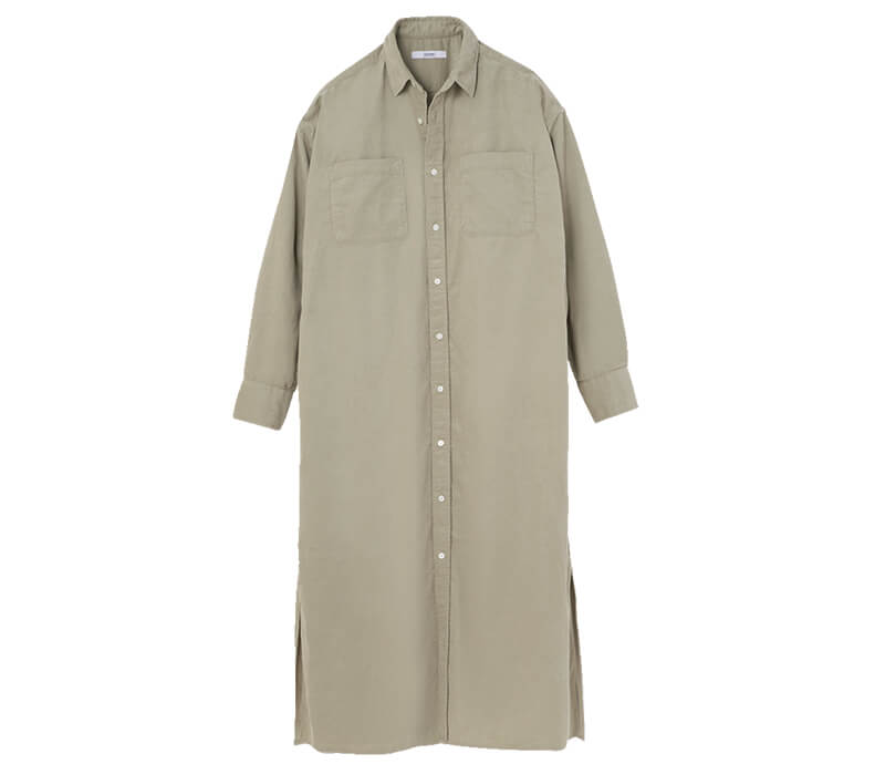 細いコーデュロイなので、カジュアルになりすぎず大人な印象に。一枚ではもちろんパンツやレギンスとのレイヤードスタイルにもおすすめします。