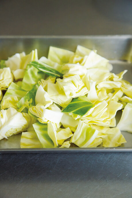 キャベツの甘味と鶏肉のうま味が、ナッツにからまって食欲増進。 「キャベツから水分が出ないうちに、手早く炒めるのがコツです」