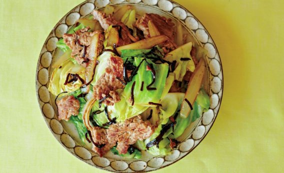 「豚ひき、キャベツ、玉ねぎ+塩昆布炒め」レシピ/市瀬悦子さん