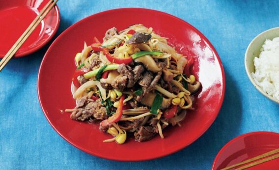 プルコギ 「この味つけだと、子どもたちが野菜をもりもり食べるんですよ。肉は野菜をクッションにして炒めると、やわらかく仕上がります」 材料・2人分 牛切り落とし肉……150g 玉ねぎ……1/2個 生しいたけ…… 2〜3枚 赤ピーマン……1/2個 細ねぎ…… 3〜4本 大豆もやし……1/2袋 A) しょうゆ……大さじ11/2 酒、白いりごま、砂糖、ごま油……各大さじ1 にんにく、しょうがのすりおろし… … 続きを読む 「プルコギ」レシピ/コウケンテツさん
