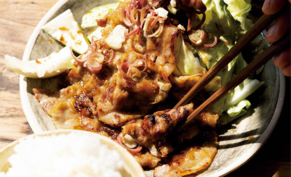 豚バラと甘酢みょうがのみそしょうが焼き 「みそを使うと肉のくさみが気にならないし、しょうゆよりも焦げにくいのでいいことずくめ!」さっぱりみょうがも絶妙な効果。 材料・2人分 豚バラ薄切り肉……150g みょうが……3個 キャベツ……2〜3枚 サラダ油……大さじ1 A) 玉ねぎのすりおろし……1/4個分 しょうがのすりおろし……1かけ分 みりん、酒……各大さじ2 みそ、しょうゆ……各大さじ1 砂糖… … 続きを読む 「豚バラと甘酢みょうがのみそしょうが焼き」レシピ/コウケンテツさん