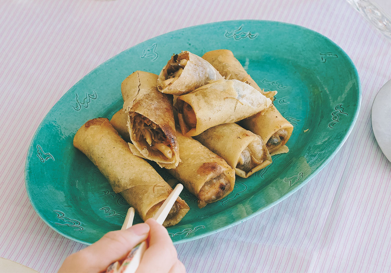 「きのこはじっくり炒めて水分を飛ばすと、食感がシャキッとして、おいしさも凝縮します。中華風のイメージですが、粒マスタードが入ることで、ちょっと無国籍。白ワインにも合う春巻きです」(中本千尋さん)