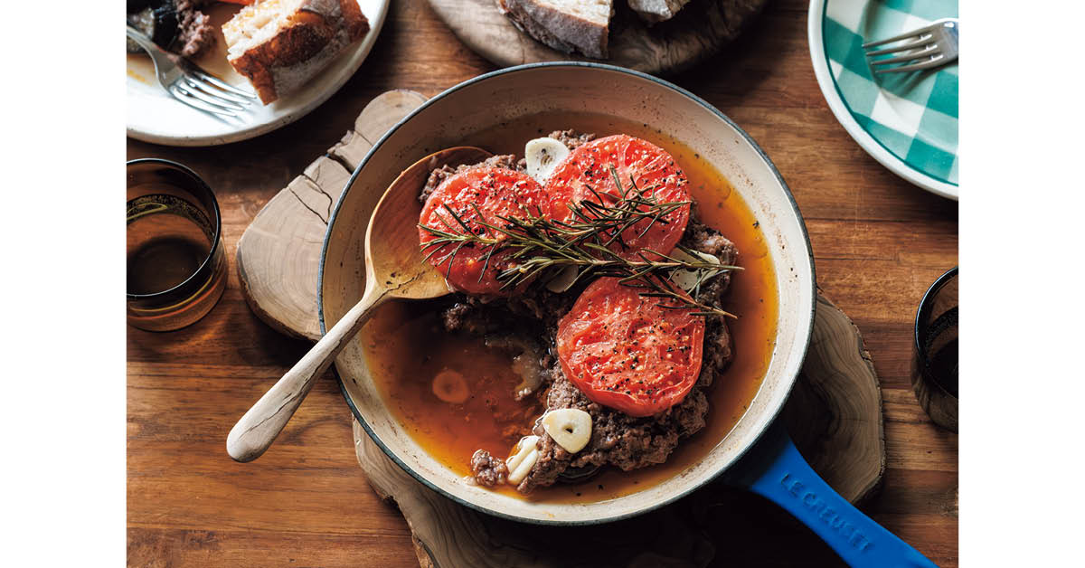 フライパンひとつで「なす、トマトのひき肉ハーブ蒸し」レシピ/ワタナベマキさん